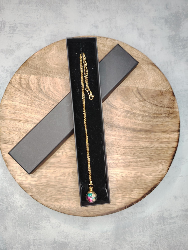 Pendentif boule fleurie avec sa chaîne