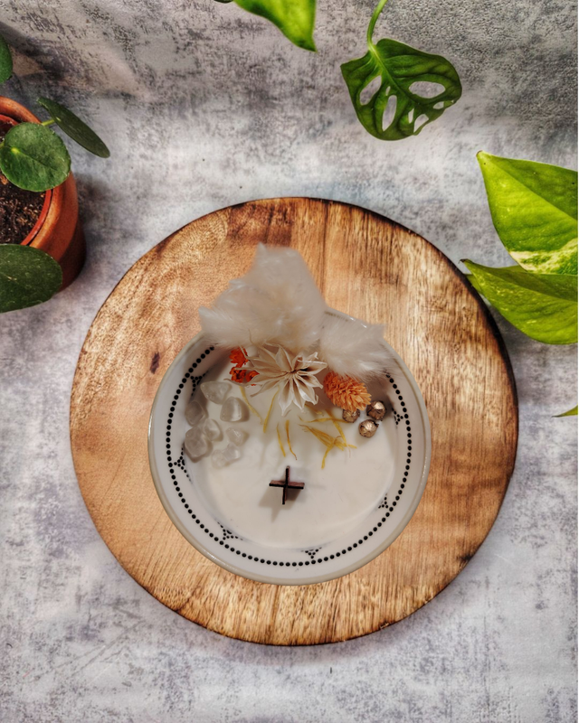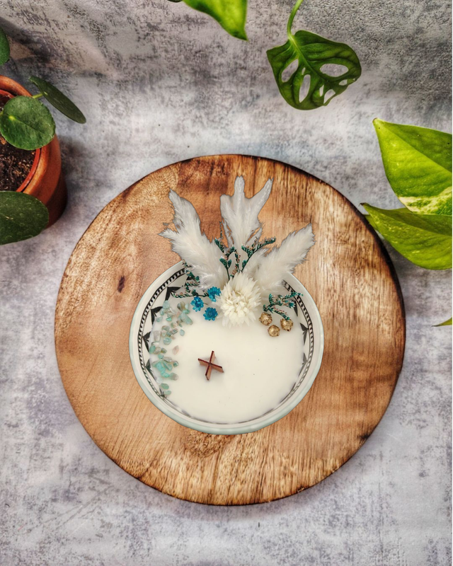 Le contenant chiné peut varier en fonction des disponibilités ainsi que les fleurs séchées.