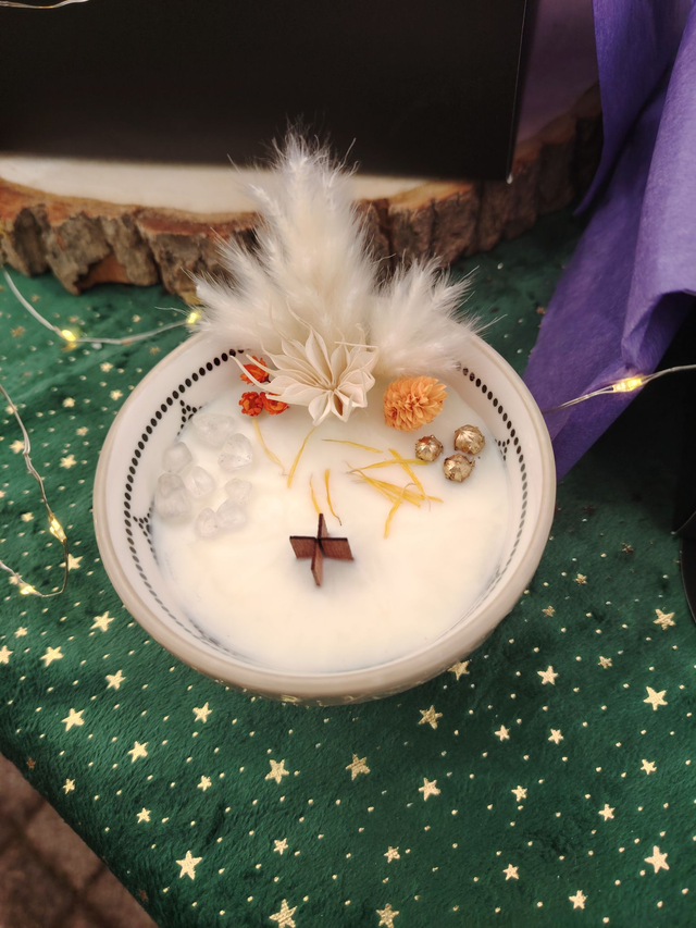 La bougie contient 110g de cire de soja européenne non OGM parfumée au parfum de Grasse.